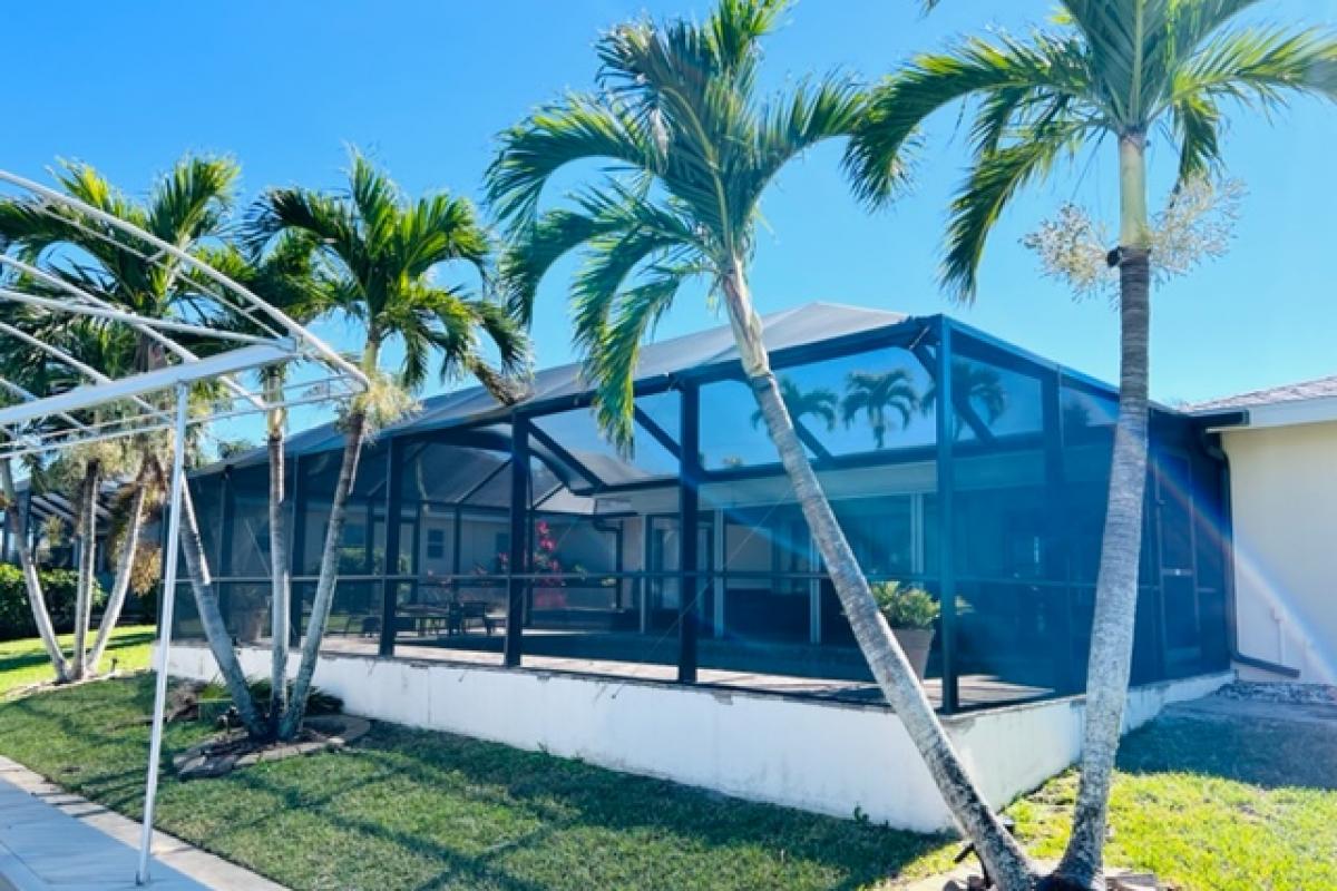 Beautiful 2 bedroom 2 bath vacation home in Cape Coral on the canal with golf access. Beautiful outdoor area with pool , loungers and seating and BBQ grill invite you to relax and linger. With a view of the canal privacy is guaranteed and furthermore anglers get their money's worth directly from the property. The cottage is very centrally located not far from shopping and restaurants.